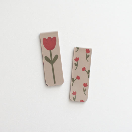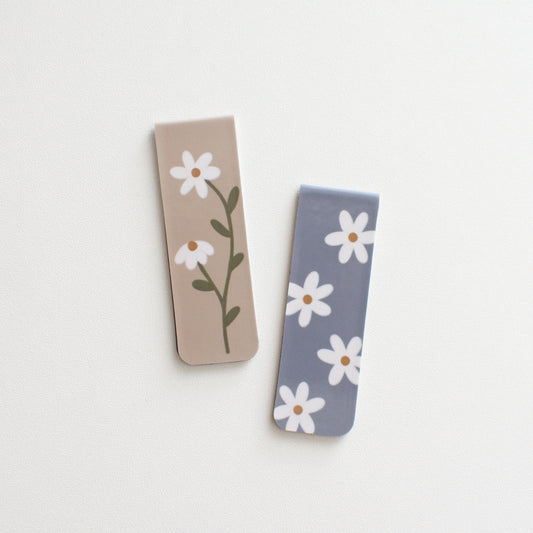 Daisies Taupe Magnetic Bookmarks Set of 2