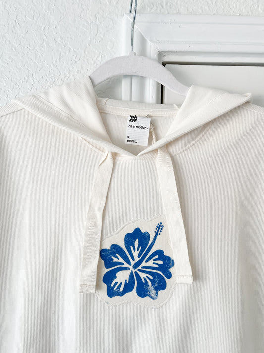 Reworked Small Lino Print Hibiscus Appliqué All in Motion Hoodie