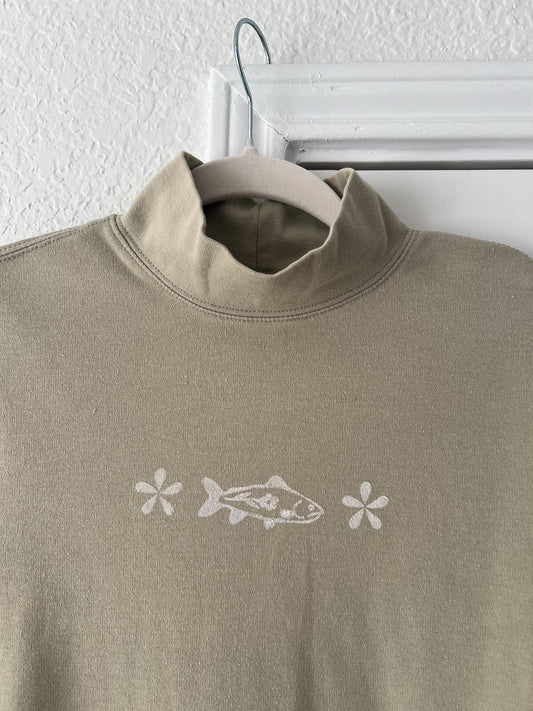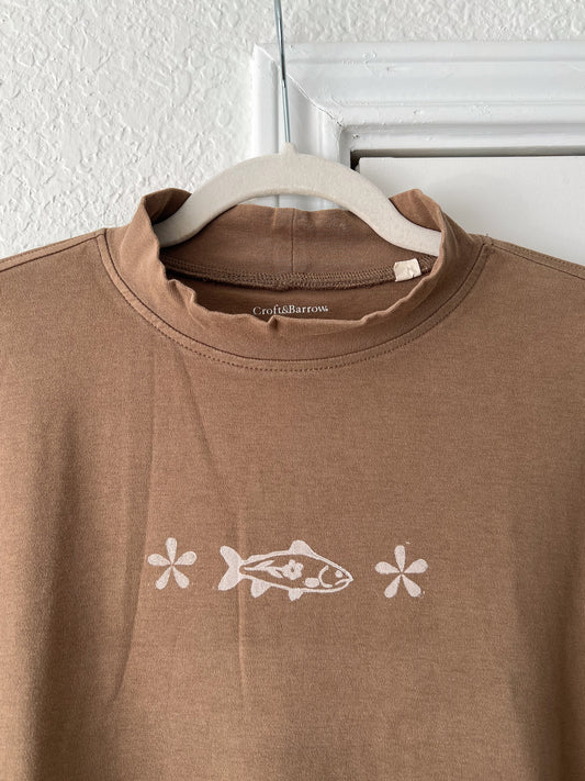 Small Reworked Lino Print Fish & Flowers Gap Long Sleeve Top