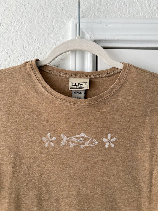 Medium Reworked Lino Print Fish & Flowers L.L. Bean Long Sleeve Top