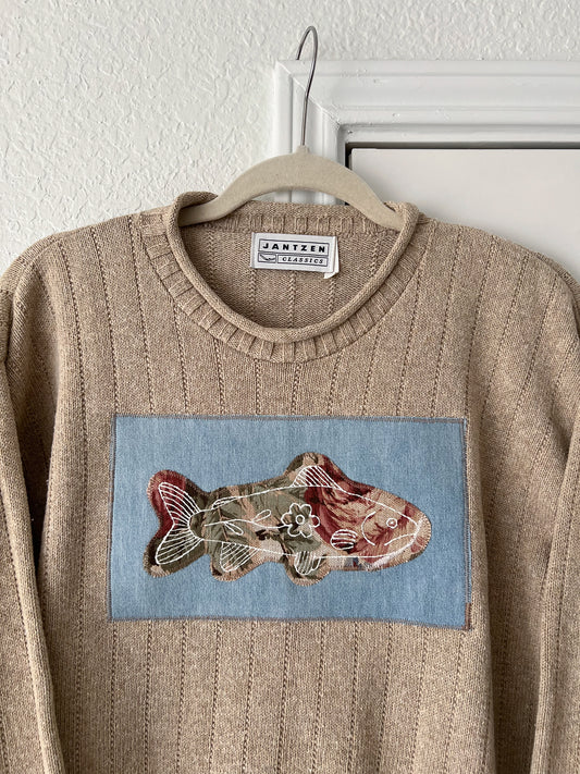Reworked Medium Jantzen Hand-painted Fish Appliqué Sweater