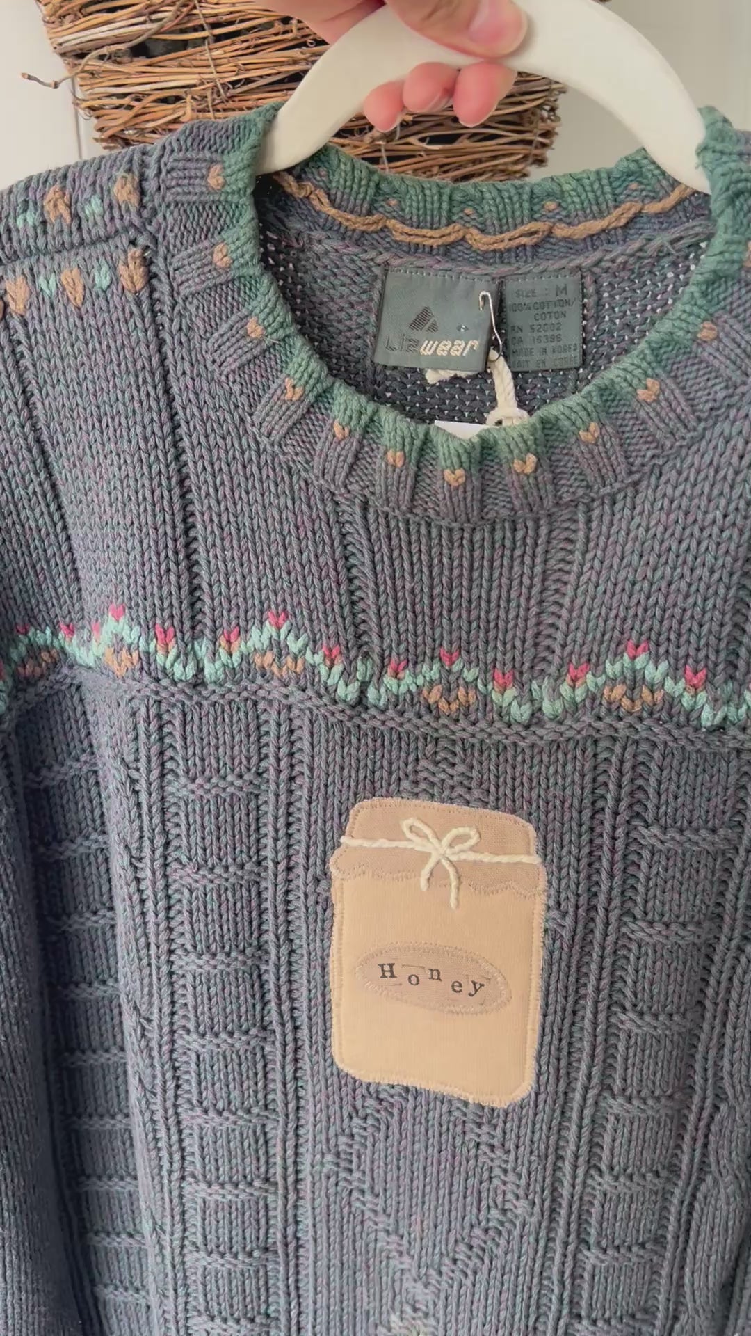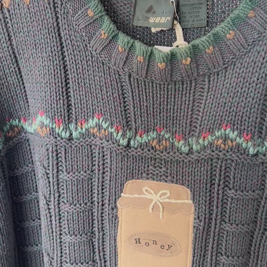 Medium Reworked Liz Wear Honey Jar Appliqué Sweater